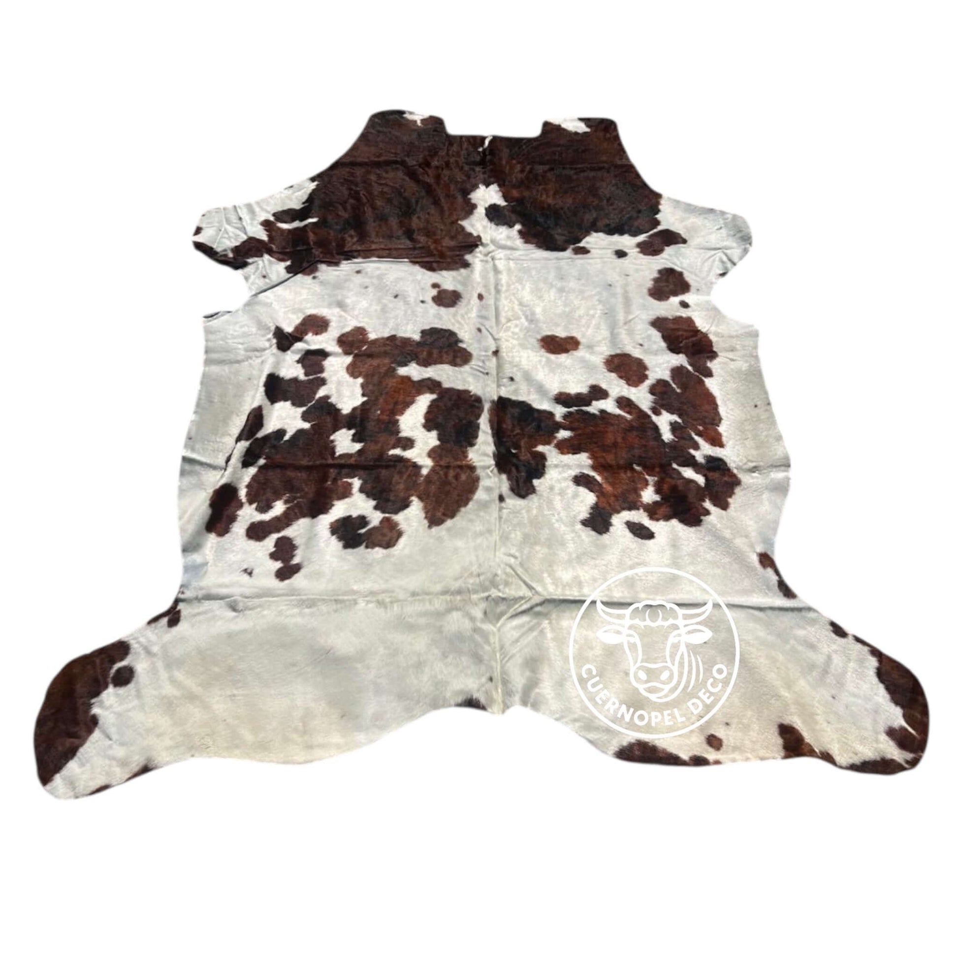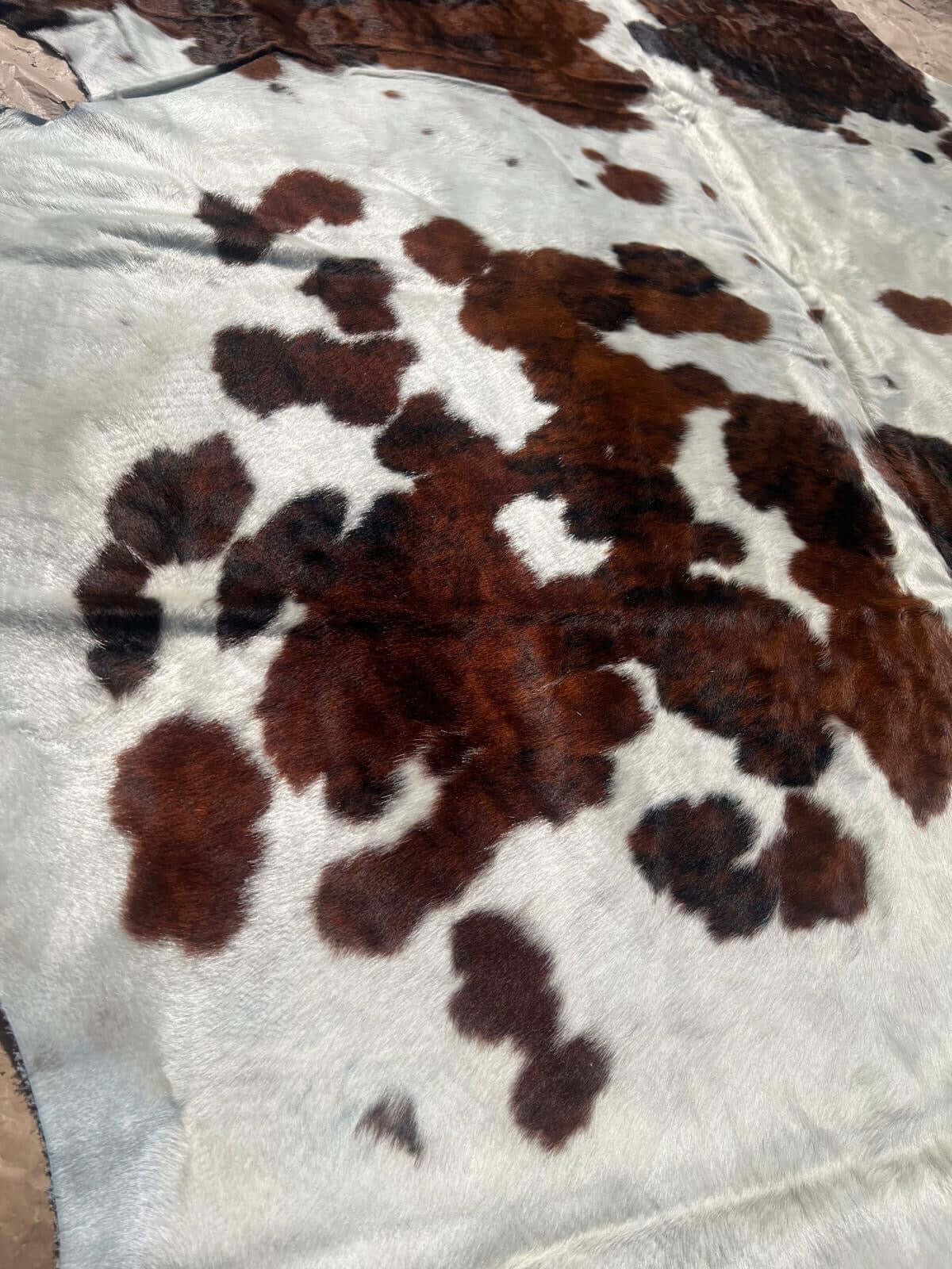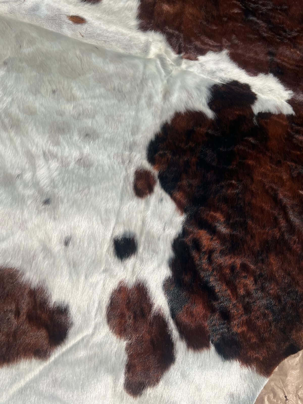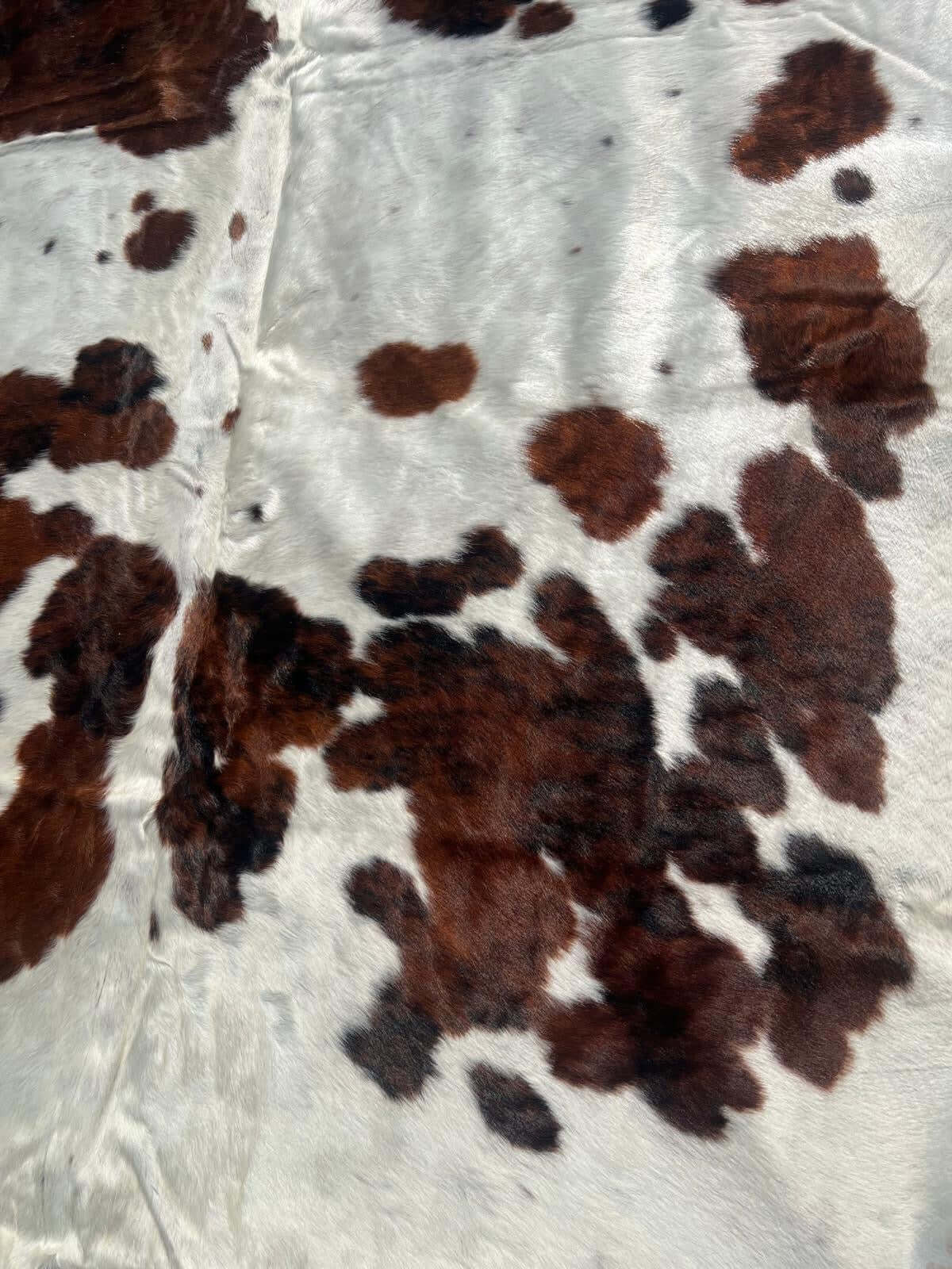 Verleihen Sie Ihrem Zuhause mit diesem spektakulären authentischen Kuhfellteppich einen Hauch von rustikaler und natürlicher Eleganz. Jedes Stück ist einzigartig, mit einem natürlichen dreifarbigen Muster, das jedem Raum Charakter und Unterscheidung verleiht.
