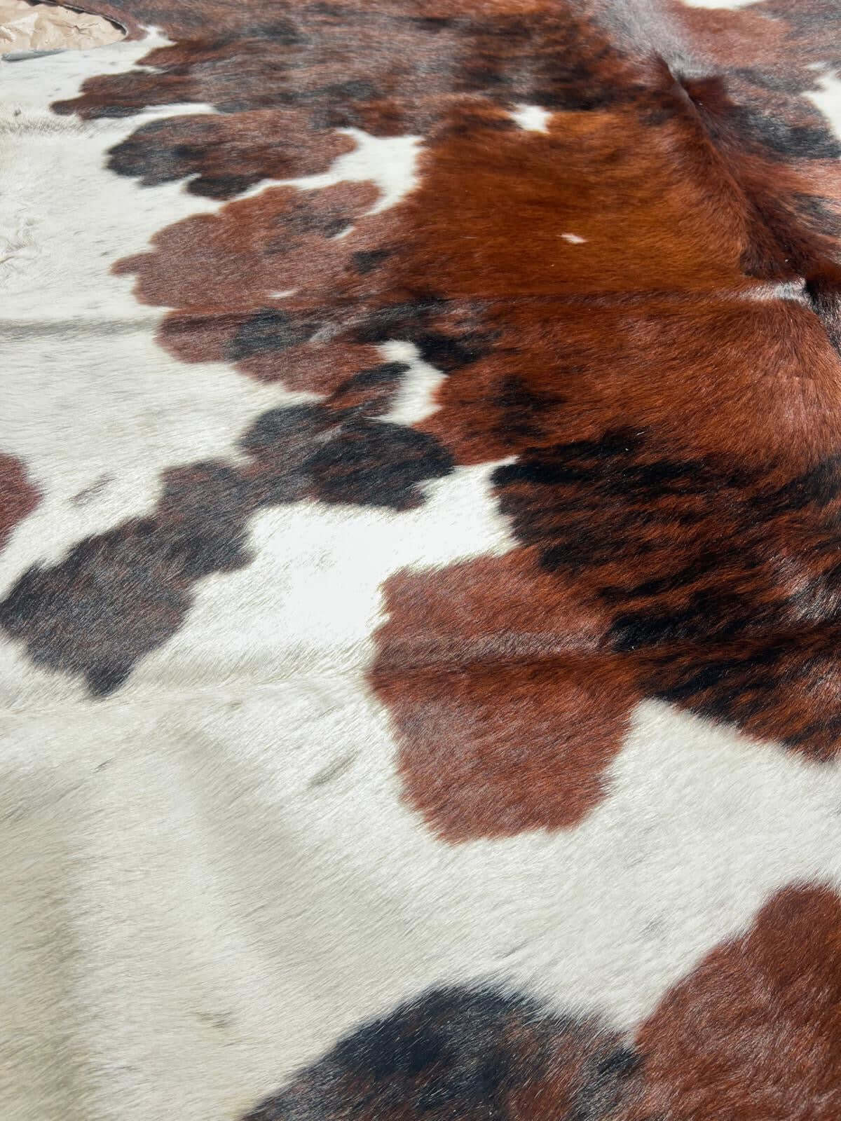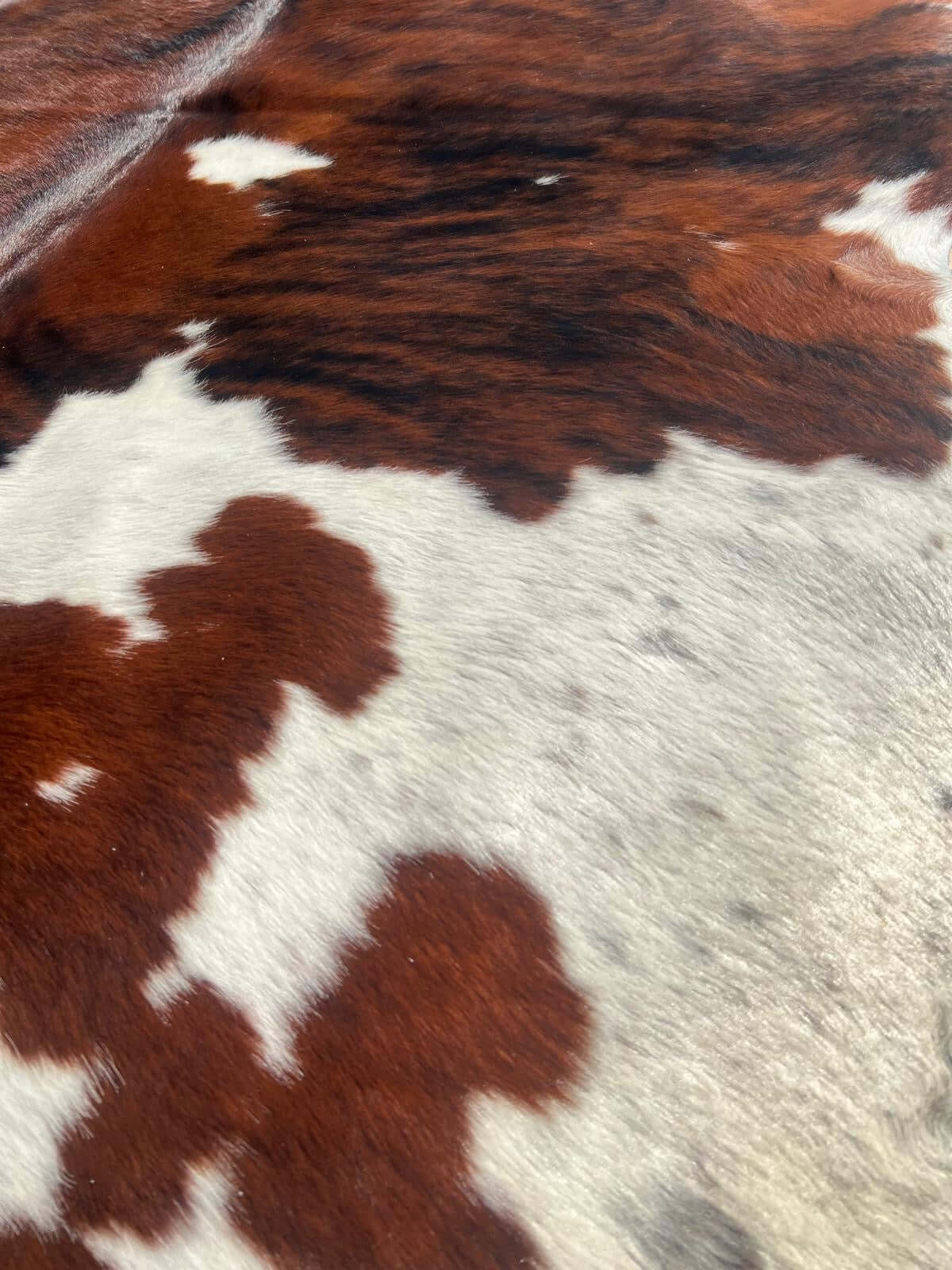 Agregue un toque de elegancia rústica y natural a su hogar con esta espectacular alfombra auténtica de piel de vaca. Cada pieza es única, con un patrón tigrado natural en tonos marrones y blancos que aporta carácter y distinción a cualquier espacio.