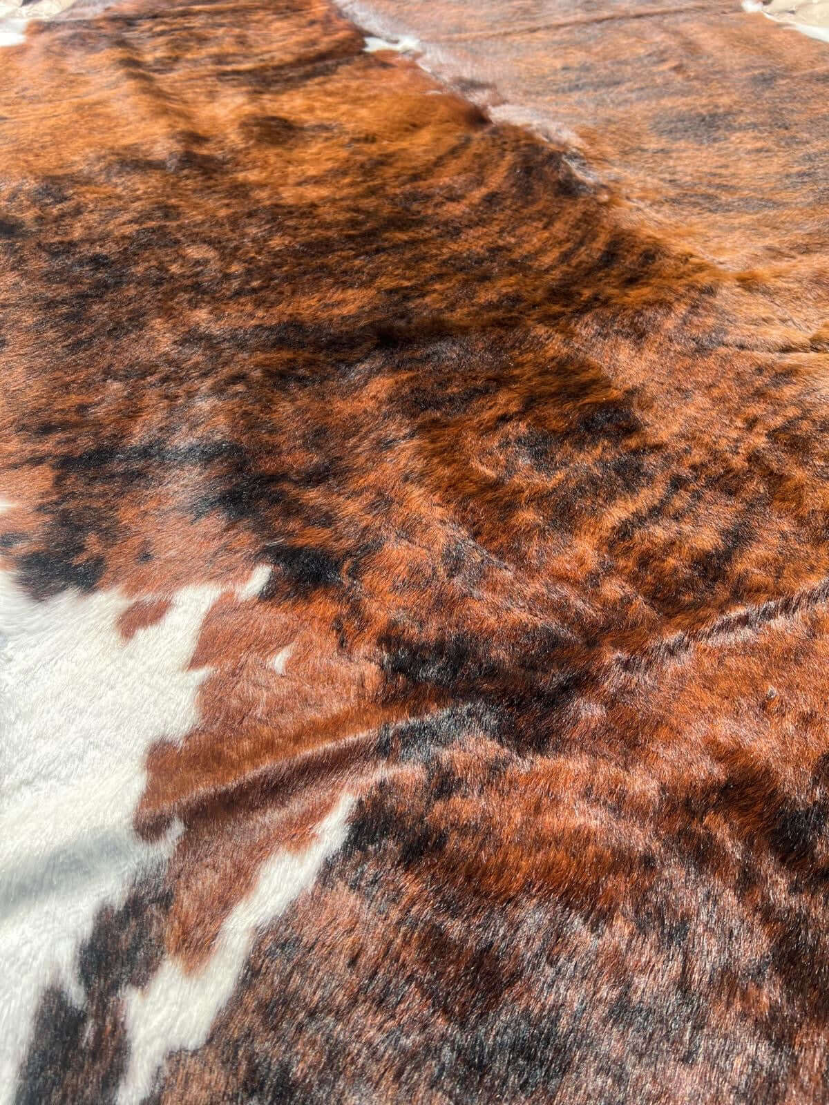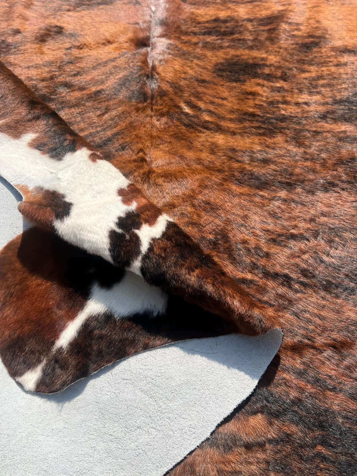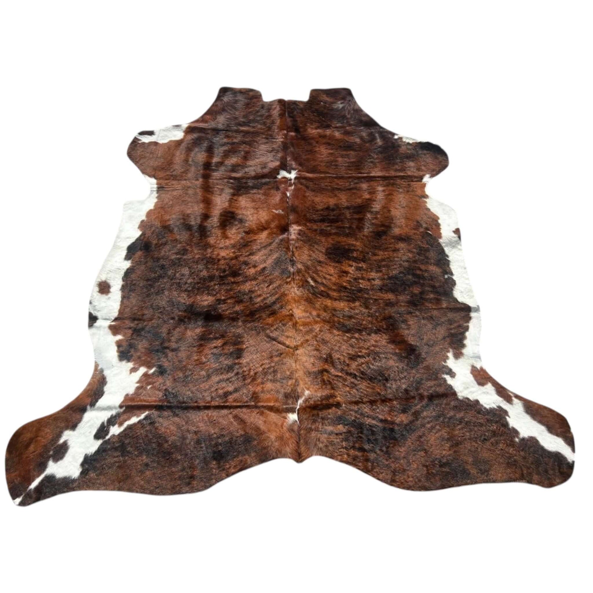 Agregue un toque de elegancia rústica y natural a su hogar con esta espectacular alfombra auténtica de piel de vaca. Cada pieza es única, con un patrón tigrado natural en tonos marrones y blancos que aporta carácter y distinción a cualquier espacio.
