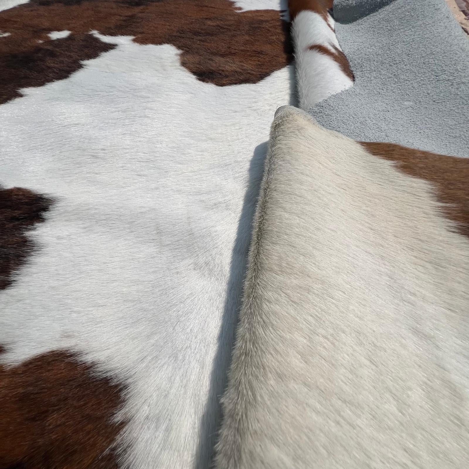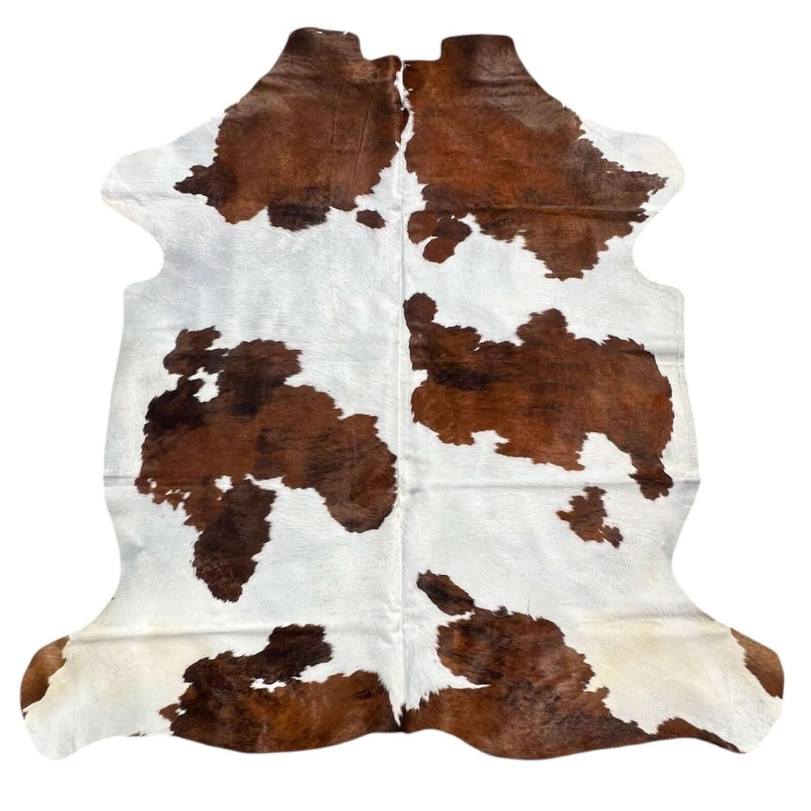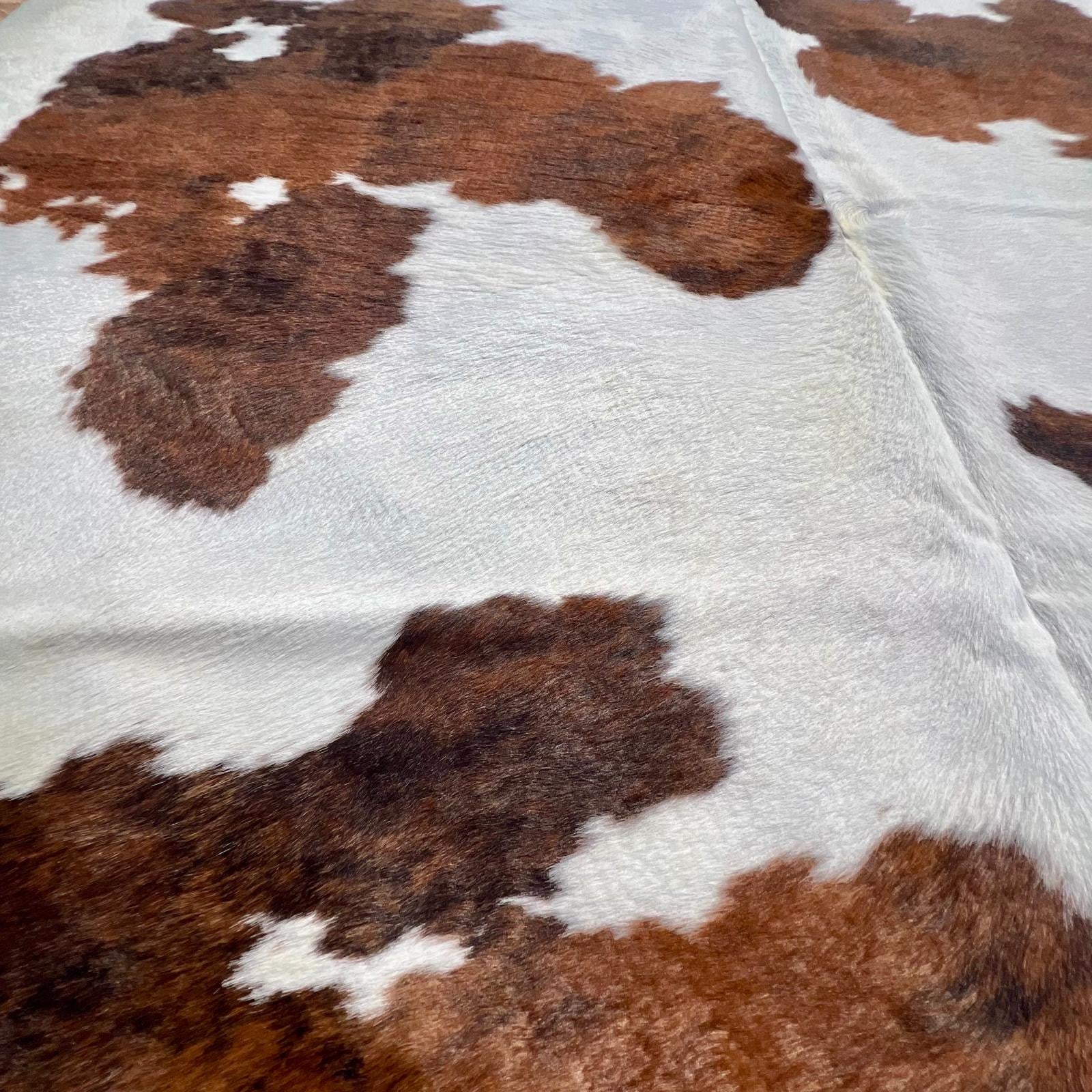 Add a touch of rustic and natural elegance to your home with this spectacular authentic cowhide carpet. Each piece is unique, with a natural tigrated pattern in brown and white tones that brings character and distinction to any space.