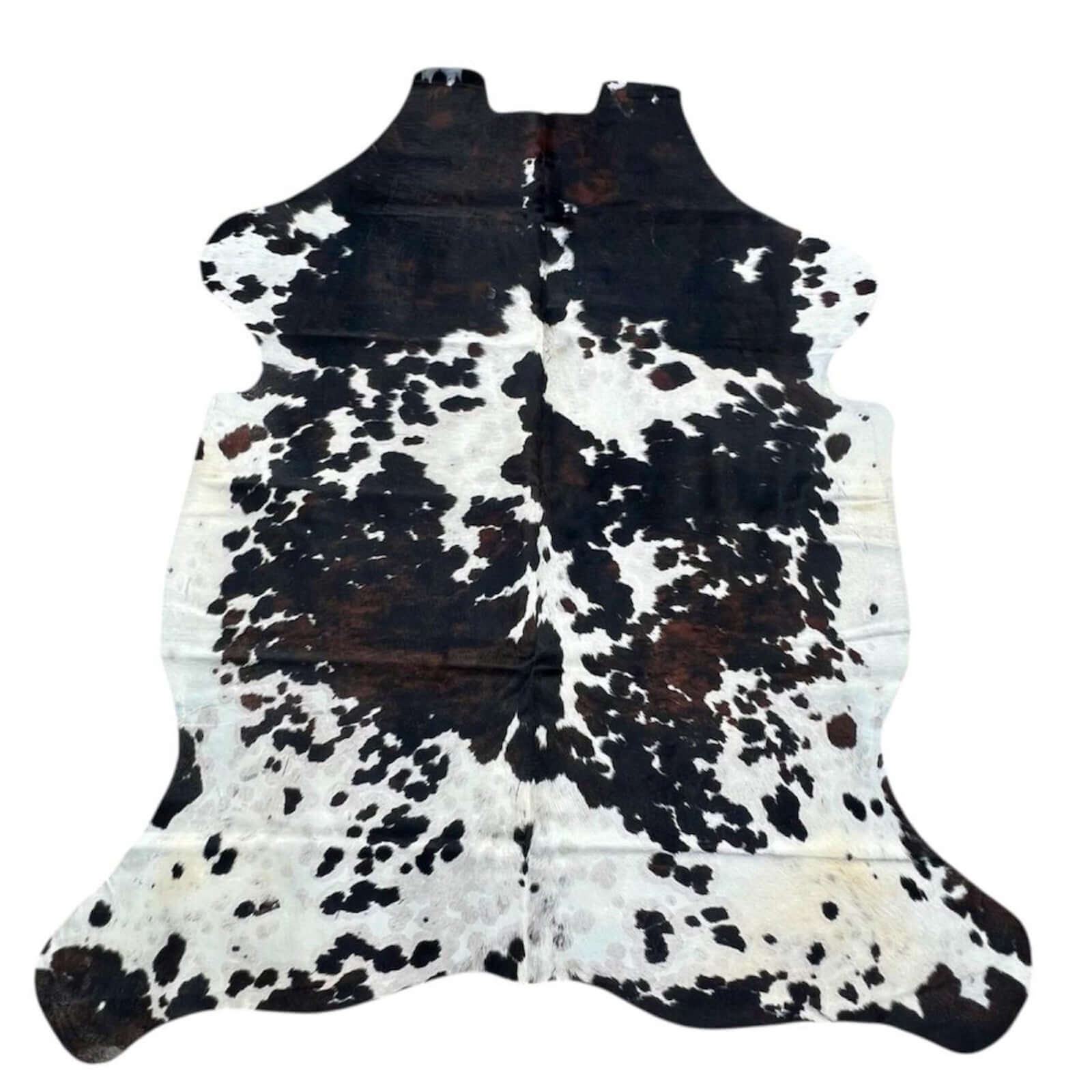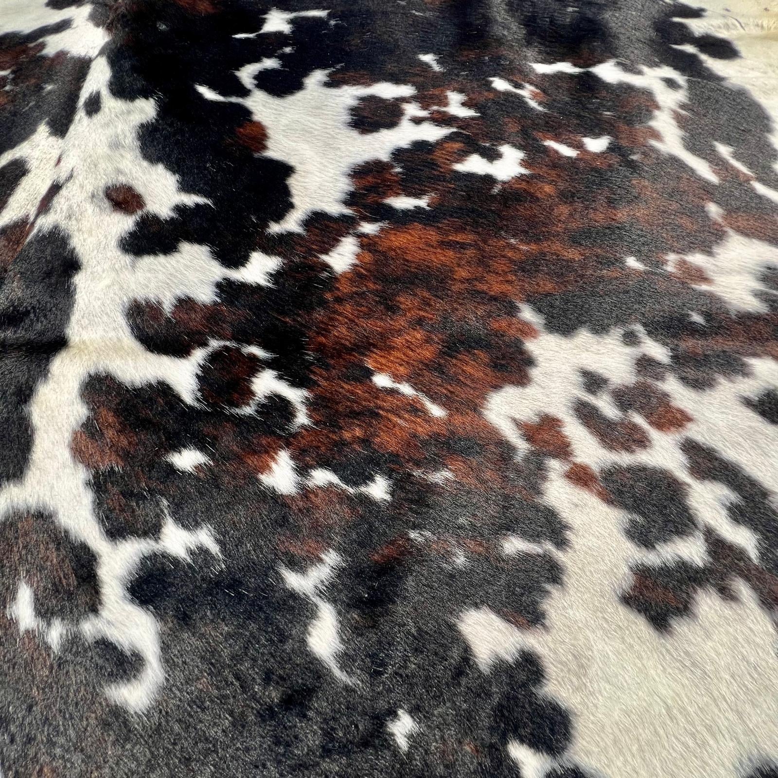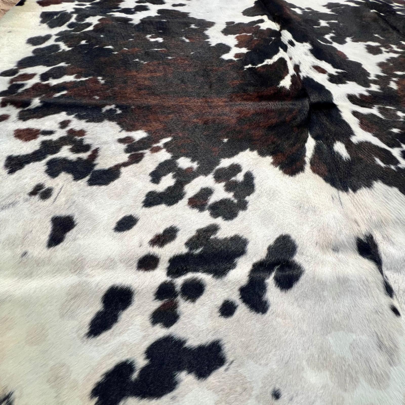 Add a touch of rustic and natural elegance to your home with this spectacular authentic cowhide carpet. Each piece is unique, with a natural tricolor pattern that brings character and distinction to any space.
