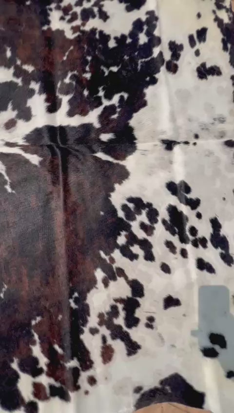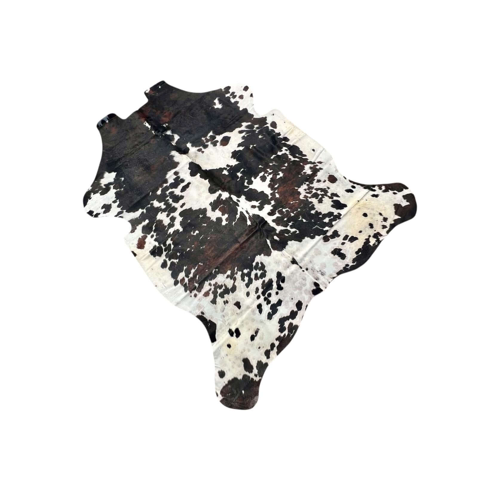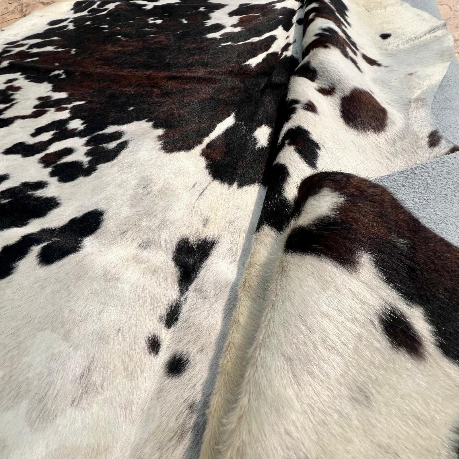 Add a touch of rustic and natural elegance to your home with this spectacular authentic cowhide carpet. Each piece is unique, with a natural tricolor pattern that brings character and distinction to any space.